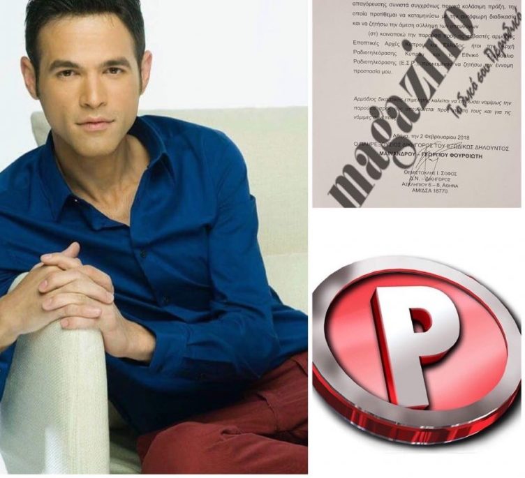 “…Δυνάμει της συμφωνίας μας αυτής έχετε αναλάβει να μου καταβάλετε έναντι της παραχώρησης της συγκατάθεσής μου για την Α΄ τηλεοπτική προβολή της ανωτέρω παραγωγής μου (και εις ουδεμία περίπτωση επανάληψη ή αναπαραγωγή μέρους ή όλου αυτής), μηνιαία αμοιβή ύψους τριάντα χιλιάδων (30.000) Ευρώ. Από την έναρξη της προβολής της εκπομπής μου στην Κύπρο υπήρξε ουσιώδης επαύξηση των εργασιών σας και της τηλεθέασης του τηλεοπτικού σταθμού σας, με αποτέλεσμα να έχετε εγγράψει μεγάλη κερδοφορία λόγω της συμβολής της παραγωγής μου. Κατά τη διάρκεια της συνεργασίας μας, ουδέν πρόβλημα ανέκυψε κατά την εκτέλεση των ιδικών μου υποχρεώσεων, πλην όμως υμείς καθυστερήσατε με διαφόρους προφάσεις την 3 καταβολή της μηνιαίας ανταμοιβής μου, ενώ εγώ καλοπίστως φερόμενος έναντι υμών ουδέν ζήτημα ήγειρα, πιστεύσας στις υποσχέσεις σας, ότι θα εξοφλήσετε τις οικονομικές υποχρεώσεις σας έναντι εμού. Επέδειξα υπομονή στο πλαίσιο των χρηστών και συναλλακτικών ηθών, και ιδιαίτερη ανεκτικότητα στις παρακλήσεις σας, ότι λόγω της δυσχέρειας μεταφοράς κεφαλαίων σας με το τραπεζικό σύστημα είχατε προσωρινή αδυναμία να μου καταβάλετε τα οφειλόμενα. Η καλή πίστη και ανεκτικότητά μου εξαντλήθηκε όταν περί το τέλος του έτους 2017 μου ζητήσατε να αναμένω ακόμη κάποιο διάστημα. Εκμεταλλευθήκατε άνευ δικαιώματος την ανωτέρω παραγωγή μου με αναπαραγωγές, μερικώς ή ολικώς, στο πλαίσιο διαφημιστικών καταχωρήσεων, εκ των οποίων έχετε εισπράξει περιουσιακά οφέλη εις βάρος μου. Η ανωτέρω συμπεριφορά σας μου έχει προξενήσει ζημία, και έχω όθεν πρόδηλο έννομο συμφέρον να σας κοινοποιήσω την παρούσα, δηλών διά του πληρεξουσίου μου, ότι (α) Σας απαγορεύω ήδη από της αποστολής, διά ηλεκτρονικής αλληλογραφίας, της παρούσης, στην διεύθυνση ηλεκτρονικής αλληλογραφίας, που χρησιμοποιείτε, κάθε προβολή της εκπομπής μου «ΑΠΟΚΑΛΥΠΤΙΚΑ», ολικώς ή μερικώς, της εικόνας μου, του λόγου μου, προβολών επισήμων ή ανεπισήμων, trailer και δοκιμαστικών, είτε τηλεοπτικώς είτε διαδικτυακώς, είτε με οποιονδήποτε άλλον τρόπο, (β) Σας καλώ να μου καταβάλετε ποσόν διακοσίων δέκα χιλιάδων (210.000,00) Ευρώ, λόγω των ληξιπροθέσμων και ήδη οφειλομένων αμοιβών μου, (γ) Σας καλώ να μου καταβάλετε ποσόν πεντακοσίων χιλιάδων (500.000,00) Ευρώ, λόγω αποζημίωσής μου για κάθε 4 προβολή επαναλήψεων, νυκτερινών προβολών, αναπαραγωγών, της εκπομπής μου «ΑΠΟΚΑΛΥΠΤΙΚΑ», (δ) επιφυλάσσομαι για κάθε περιουσιακή ζημία έχω υποστεί από την προβολή και εκμετάλλευση της εκπομπής μου «ΑΠΟΚΑΛΥΤΙΚΑ» με διαφημιστικές καταχωρήσεις, και (ε) Σας υπενθυμίζω ότι κάθε παραβίαση της παρούσης απαγόρευσης συνιστά συγχρόνως ποινικά κολάσιμη πράξη, την οποία προτίθεμαι να καταμηνύσω με την αυτόφωρη διαδικασία και να ζητήσω την άμεση σύλληψη των υπευθύνων (στ) κοινοποιώ την παρούσα προς τις σεβαστές αρμόδιες Εποπτικές Αρχές Κύπρου και Ελλάδος, ήτοι την Αρχή Ραδιοτηλεόρασης Κύπρου και το Εθνικό Συμβούλιο Ραδιοτηλεόρασης (Ε.Σ.Ρ.), προκειμένου να ζητήσω την έννομη προστασία μου. Αρμόδιος δικαστικός επιμελητής καλείται να επιδώσει νομίμως την παρούσα προς ους απευθύνεται προς γνώση τους και για τις νόμιμες συνέπειες….”