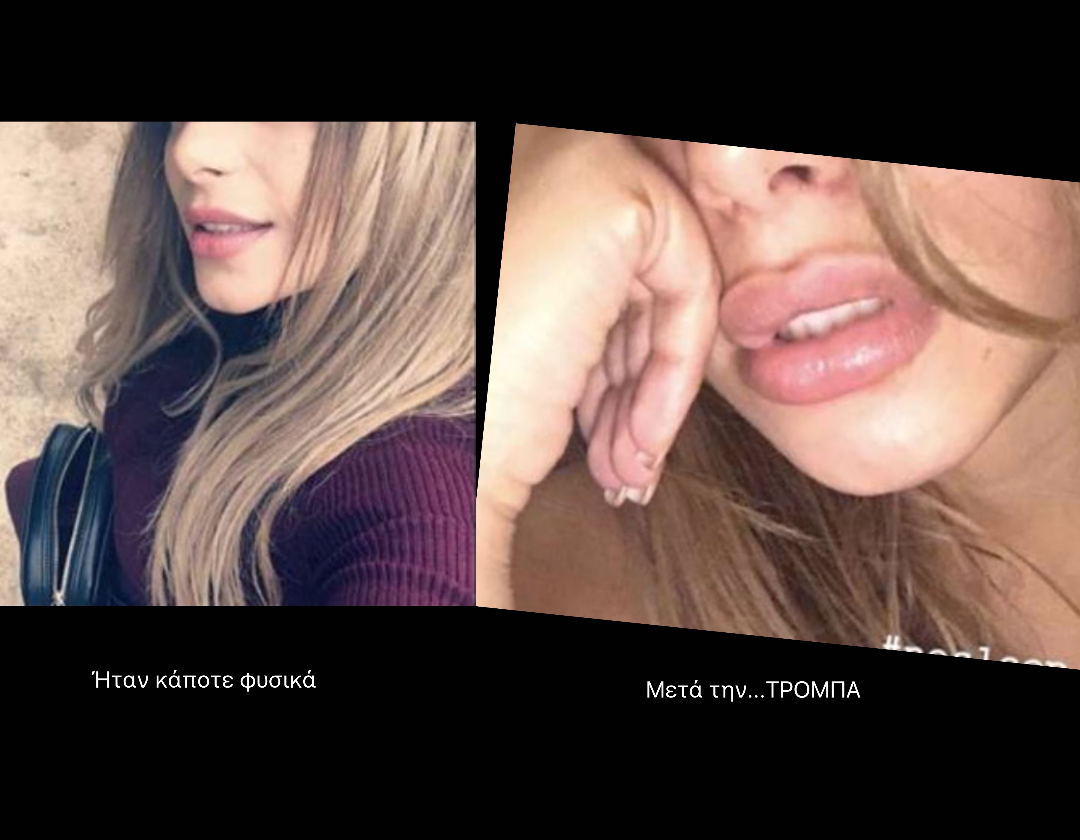 Το αποτέλεσμα; Να γίνει άλλη μια γκόμενα τρόμπα. Άλλη μια από αυτές που κυκλοφορούν και έχουν ως προτεραιότητα μετά το νύχι και το μαλλί την τρόμπα υαλουρονικού.