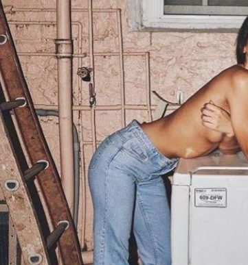 Το μοντέλο ποζάρει φορώντας μόνο ένα…