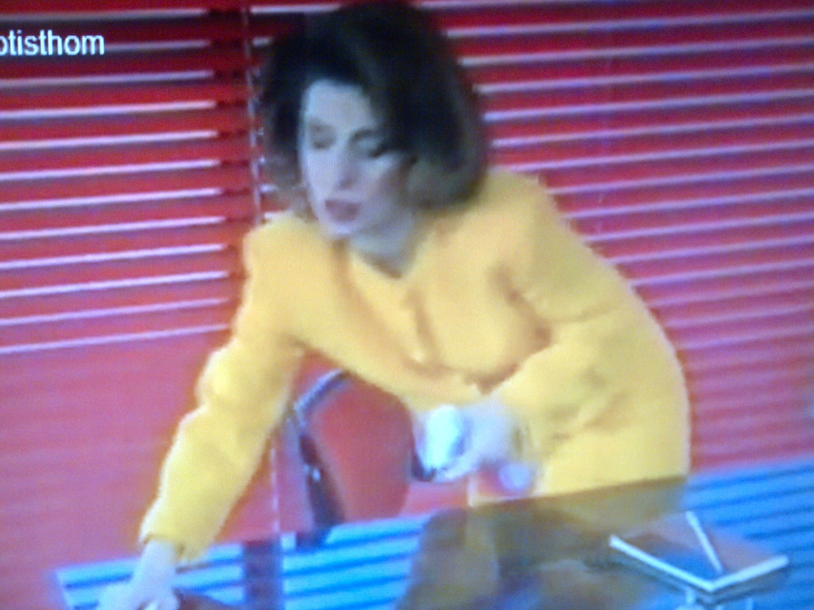 Άραγε τι απαιτήσεις να είχε το κορίτσι εκείνη την εποχή; Οικονομικές εννοώ…Όσα πήρε απο πέρσι για γνωστή καλλυντική κρέμα; Μπά. Όσο για το look…σκοτώνει…Ένα μουσταρδί ταγιέρ που με το ζόρι αχνοφαίνεται ο λαιμός, σκούρα καφέ μαλλιά, έντονο κόκκινο κραγιόν-αυτό τελικά είναι το μόνο που έμεινε ίδιο στο πέρας των δεκαετιών- και φρύδια, διπλάσια απ