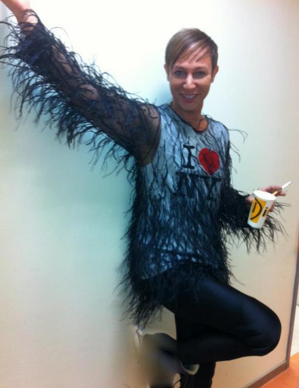 Μια σύνθεση see thru με φτερά και ευτυχώς για όλους μας έχει επιλέξει και ένα μπλουζάκι απο το τελευταίο ταξίδι του στη Νέα Υόρκη. Κρατάει έναν καφέ και το τσιγάρο πάει σφαίρα. Μα καλά ρε Βασίλη…Γιατί καπνίζεις τόσο πολύ; Μετά λε΄ς ότι είναι δύσκολο το Dancing και οπώς θέλει φυσική κατάσταση…Με τόσα τσιγάρα που πάς;