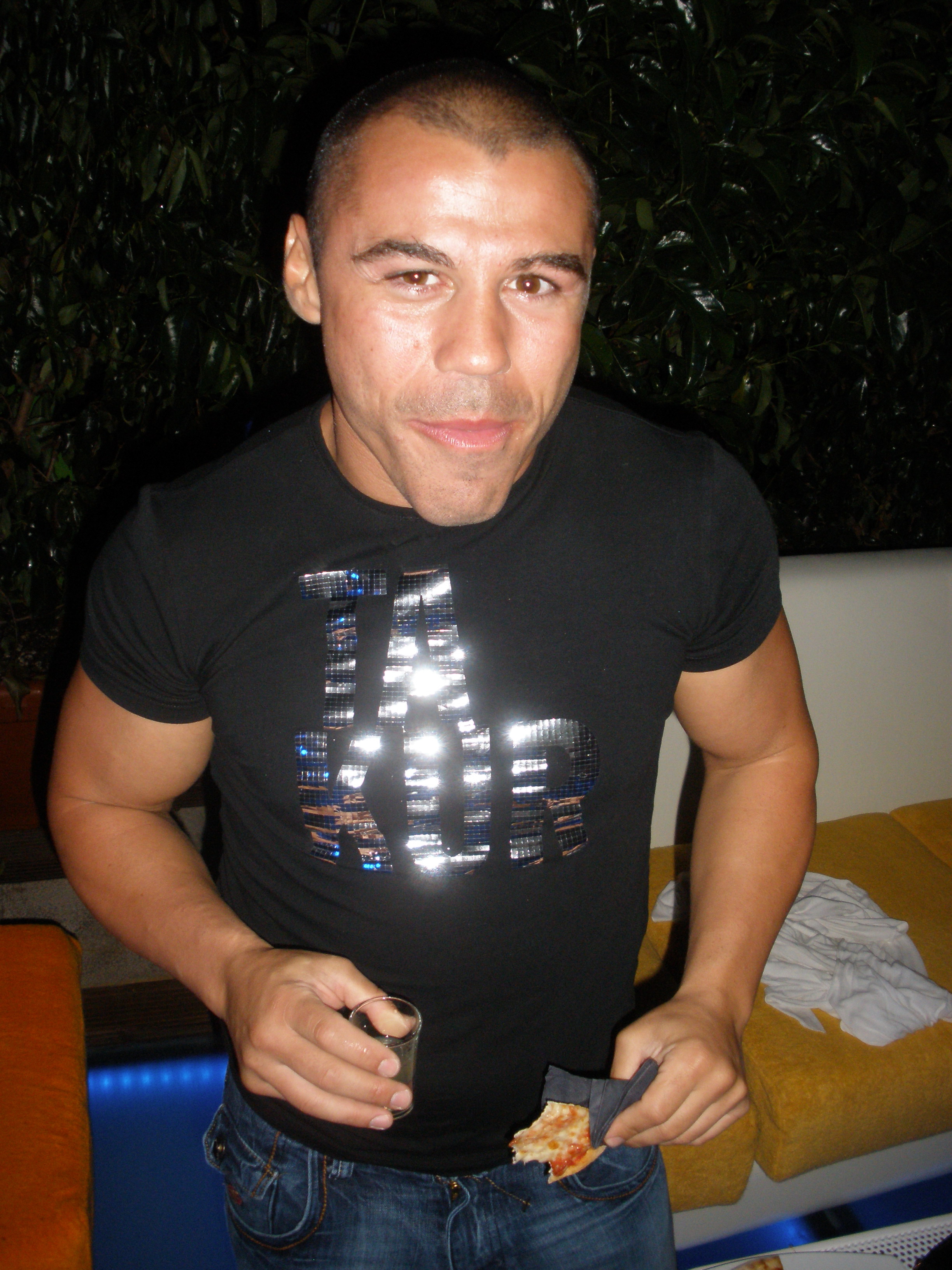 Ο Μαχητής Ζαμπίδης ή αλλιώς Iron Mike βρήκε λίγο χρόνο να πιει ένα ποτό-και όχι τρία τέσσερα- με φίλους, όμως δε δίστασε να «χαλάσει» για λίγο το διατροφικό του πρόγραμμα και να φάει πίτσα. Κανείς τελικά όσο πειθαρχημένος κι αν είναι δε μπορεί ν αντισταθεί στη θέα ενός κομματιού ζεστής πίτσας. Τα νέα του Μιχάλη; Αυτή την περίδο ετοιμάζεται για αγώνες στο εξωτερικό ενώ το Δεκέμβρη θα έχουμε την ευκαιρία να τον ξαναδούμε να κλωτσάει και πάλι στην Ελλάδα. Νομίζω ότι μετά το ξύλο που έφαγε στην Αυστραλία χρωστάει ένα δυναμικό come back εντός των συννόρων…το έχει ανάγη και ο ίδιος…Γι αυτό και ήταν στις »κλειστές του».
