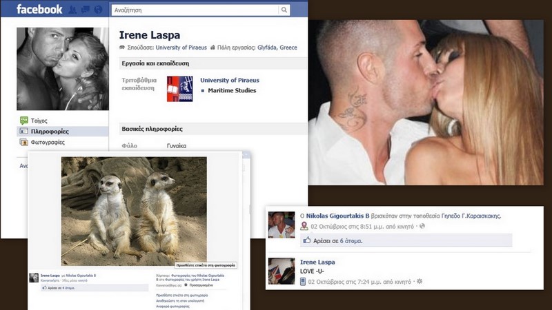 Η σύντροφός του με την οποία είχε επανασυνδεθεί τον τελευταίο καιρό μετά από διακοπή ενός χρόνου περίπου. Μετά την κακή είδηση το κορίτσι προτίμησε να εκφραστεί μέσα απο το διαδίκτυο και την σελίδα της. Και έκανε πολύ καλά. Άλλωστε το ζευγάρι μετά την επανασύνδεση του δεν έκανε κοινές εμφανίσεις καθώς δεν ήθελε αυτή τη φορά η σχέση του να δει το φως της δημοσιότητας. Ωστόσο ήταν «φίλοι» στο facebook και δεν ήταν λίγες οι φορές που η Ειρήνη εκδήλωνε τα αισθήματα της μέσα από αυτό. Όπως βλέπετε κι έσειες παρακάτω, πριν από λίγες μέρες, στις 2 Οκτωβρίου, είχε γράψει στον τοίχο του LOVE U (Σ αγαπάω) ενώ δυο μέρες πριν τον θάνατο του, του πρόσθεσε μια φωτογραφία με δυο ζωάκια τα οποία ονόμασε με τα δικά τους ονόματα. Μάλιστα στη συγκεκριμένη φωτογραφία έκανε like (δηλαδή ένδειξη ότι του αρέσει, ο Νίκος Γιγουρτάκης) κάτι που δείχνει πως το ζευγάρι ήταν πραγματικά ερωτευμένο. και λίγες ώρες αργότερα άφησε την τελευταία του πνοή. Η κοπέλα βρίσκεται σε κατάσταση σοκ και το μόνο που έκανε είναι να αλλάξει λίγες ώρες μετά το θάνατο του τη φωτογραφία της στο facebook. Εκεί που ήταν μόνη της, έβαλε μια που είναι μαζί με τον Νίκο, θέλοντας έτσι να δείξει πως έχασε τον άνθρωπο της….Η συνάδελφος Σπυριδούλα Τριάντου γράφει…