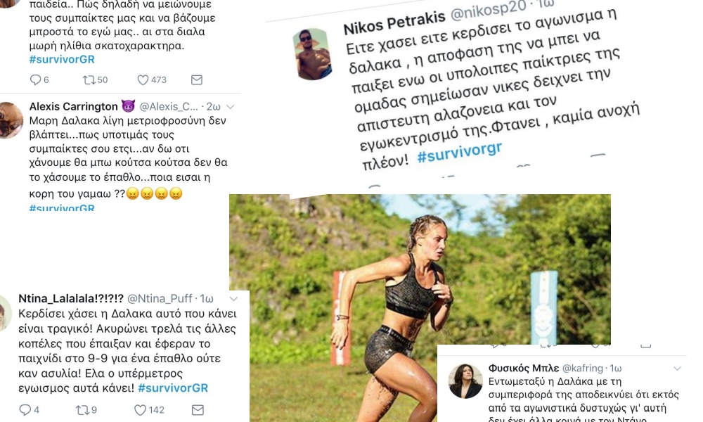 Μετά τον Σπύρο Σούλη που ξέσπασε με τη Δαλάκα η οποία ενώ ήταν τραυματισμένη θέλησε να μπει στον αγωνιστικό χώρο, όλο το τουίτερ πήρε φωτιά. Συγκεκριμένα ο παρουσιαστής έγραψε: «Αγνοώντας τραυματισμό και γιατρούς και διακινδυνεύοντας να τραυματισθείτε περισσότερο χάνοντας και…