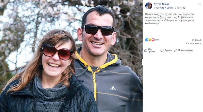 «Πέρασε ένας χρόνος από τότε που άφησες τον κόσμο για να ζήσεις μέσα μας. Σε βλέπω στα πρόσωπα των παιδιών μας και καμιά φορά σε κανένα όνειρο...».